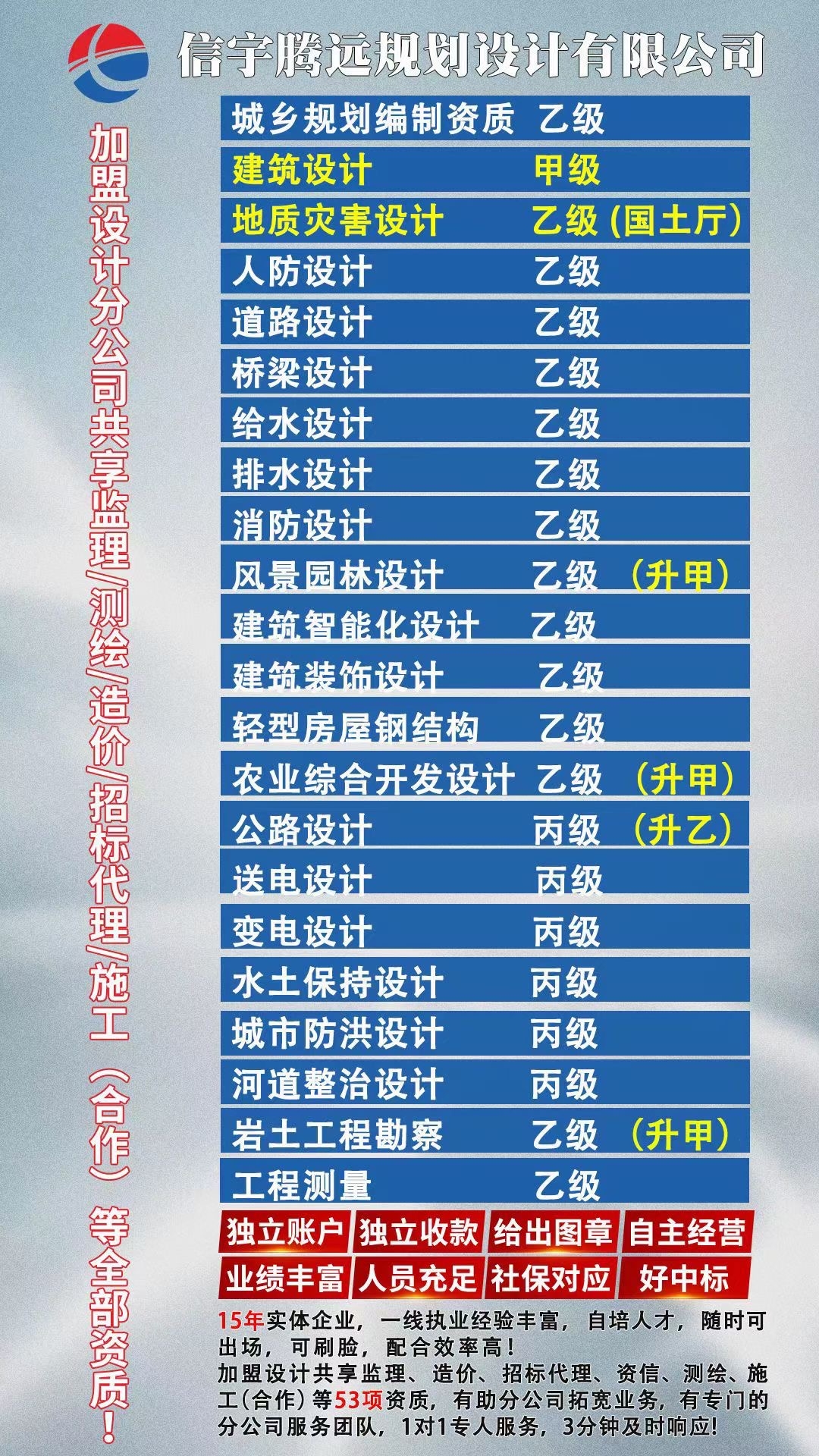 资质证书:乙级工程设计加盟分公司必须持有有效的乙级工程设计资质证书,这是开展业务的基本前提。