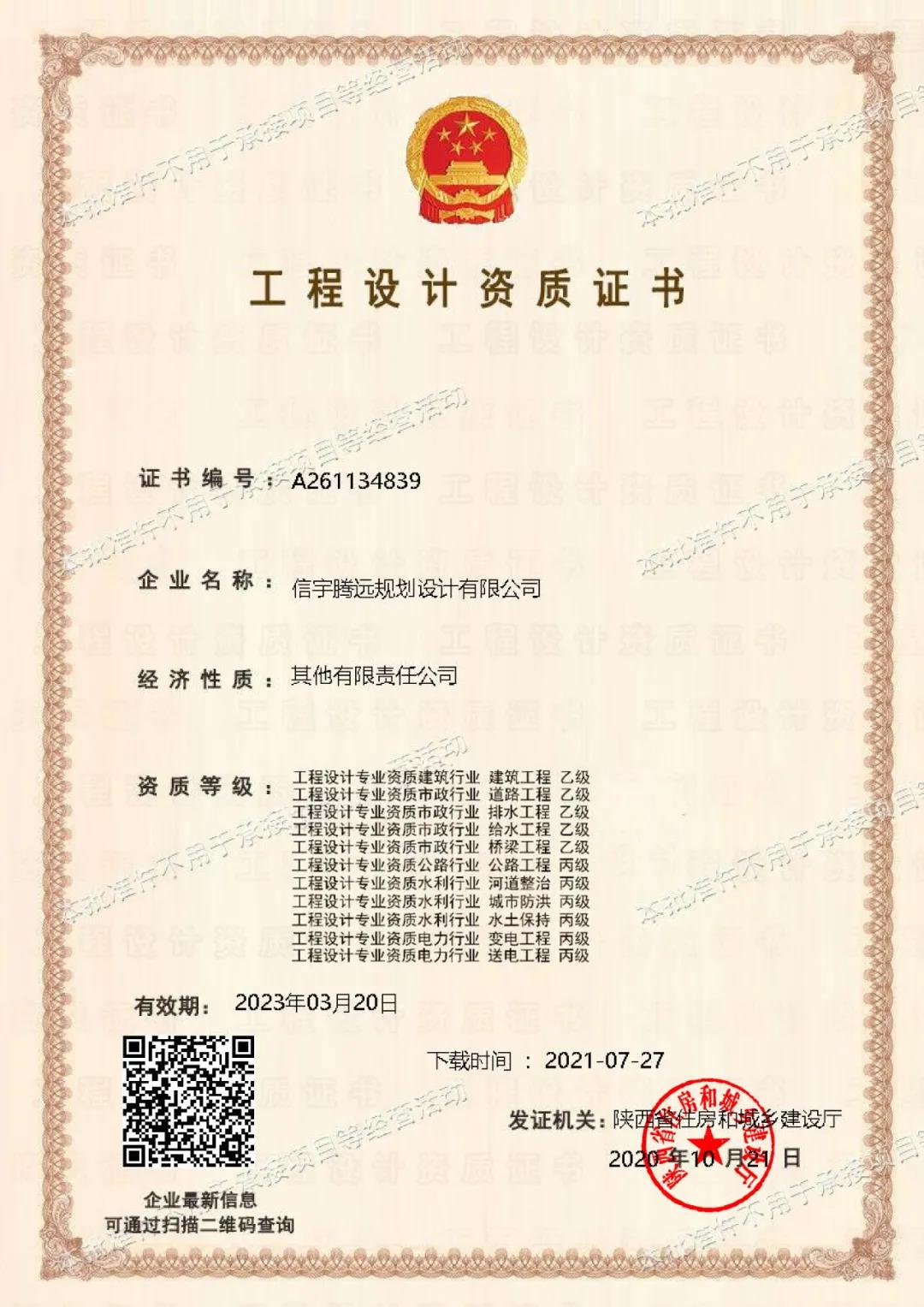 信宇腾远规划设计有限公司成功申请:政府采购代理机构、工程招标代理机构。