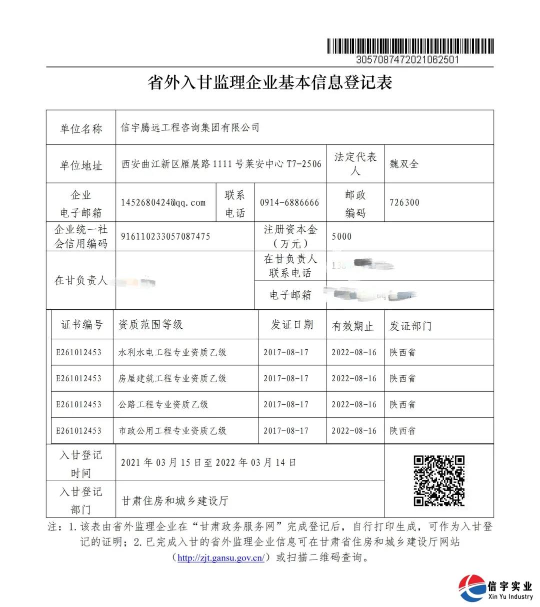 同时,甘肃省公共资源交易中心、甘肃省政府采购网相继备案入库。分公司的成立、资质的入驻备案,资源共享,相信信宇能与各分公司共赢未来。