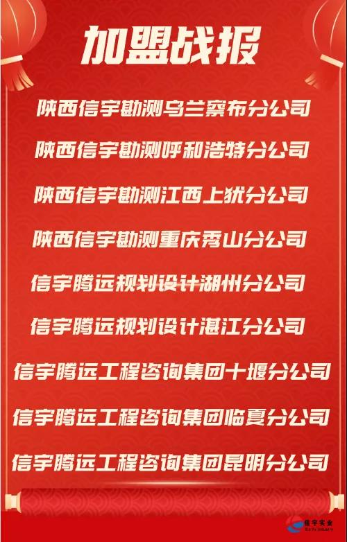 信宇腾远不断深耕远拓,资质体系不断强大,人才队伍不断壮大,行稳致远,进而有为,分公司的成立、资质的入驻备案,资源共享,相信信宇腾远能与各分公司共赢未来。