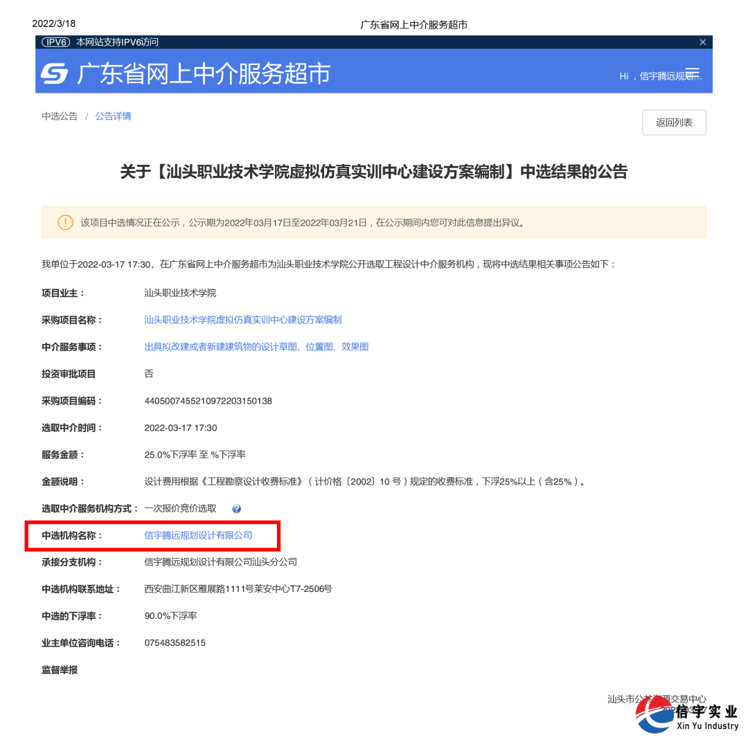 210cc大资本 2022年3月,信宇腾远规划设计有限公司通过广东省网上中介服务超市进行公开选取并经过项目业主确认,中选汕头职业技术学院虚拟仿真实训中心建设方案编制。